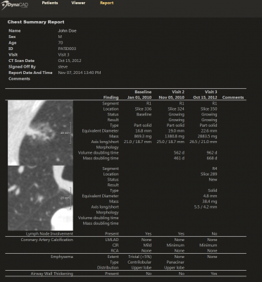 • Radiology Workflow – CT lung image review and reporting offers specialized radiology software tools which facilitate review and reporting of serial CT lung exams to identify and easily follow areas of concern.