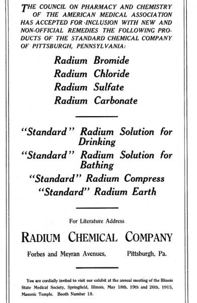 Radium was first investigated as a medical treatment for an array of diseases just prior to World War I. The Standard Chemical Company mined radium in Pennsylvania from 1912-1922. It closed due to competition from lower-cost radium that came from the Belgium Congo. The site was later used for the U.S. government's uranium mining operations to supply ore for the Manhattan Project.