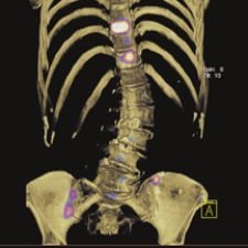 This 99mTc MDP bone SPECT/CT study shows multiple skeletal metastases and was acquired on Siemens' Symbia True Point SPECT/CT.