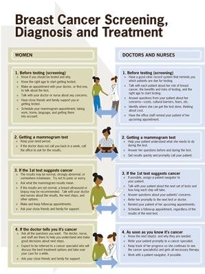 - Use public-private partnerships to work with health care systems and health insurance companies to help educate women and their doctors about timely, high-quality breast cancer care.