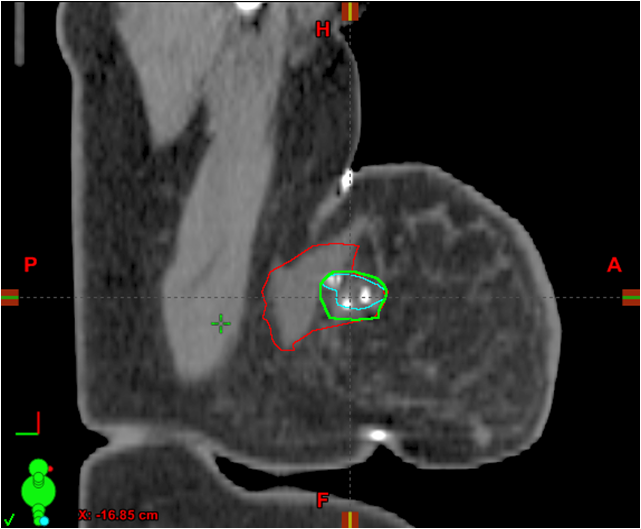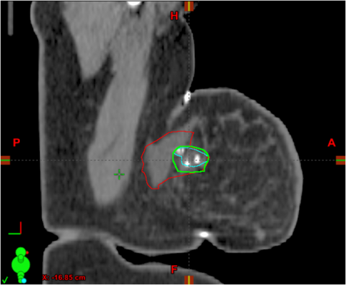 To compensate for the uncertainties these challenges can cause, planners will often designate a large area of the breast for treatment to ensure the entire tumor site is included. This is a prudent approach from a cancer control standpoint, but increases the volume of normal breast tissue irradiated with boost or partial breast treatment. As the target volume in the breast becomes larger, the radiation exposure to the heart, lungs and chest wall increases as does the potential deleterious effect on cosmetic appearance.