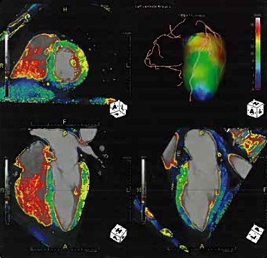 TeraRecon's coronary review software is being marketed primarily to researchers so its abilities can be further validated. It can show color maps of blood perfusion in the myocardium during the cardiac cycle. The images look very similar to PET perfusion scans, but with much better resolution.