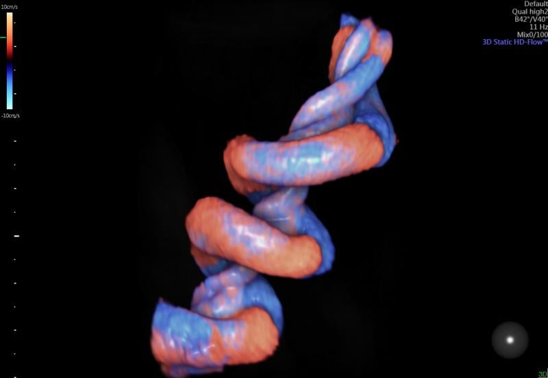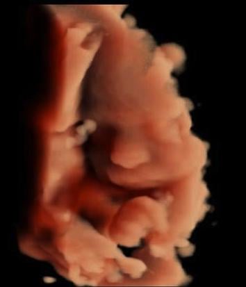 3D-4D ultrasound of a fetus imaged with a GE Volusion E10 system. It shows the yoke sac.