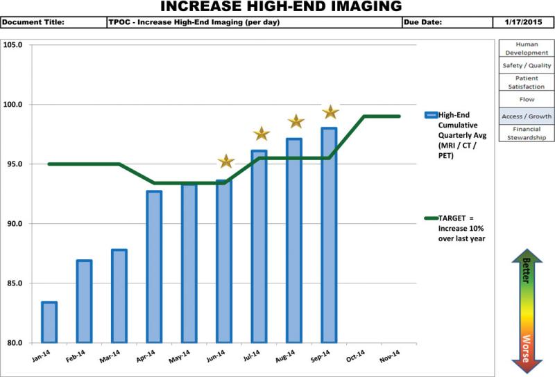 The second component of this formula is to use state-of-the-art radiology information systems designed by people who understand health information technology workflows and business needs. Our IT generates metrics that are vital to the lean project. It enhances our radiologists’ and technologists’ productivity because the technology is efficient to use, from reading to report generation. In addition, tools built into the information systems make us more efficient and productive, and therefore advance our lean goals. That said, those tools are only helpful when used, so we’ve invested the time to become power users. Here are some examples of how the combination of lean transformation and health IT can work together to help grow an organization.