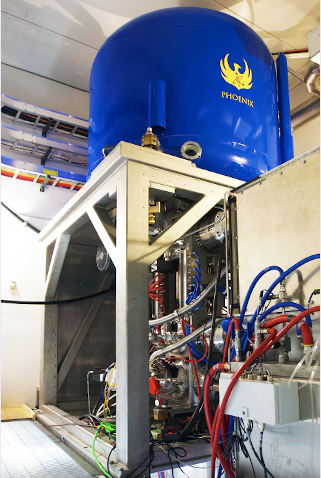 Shine Test System paired with the world’s strongest commercial fusion neutron generator manufactured by Phoenix. It can break apart low-enriched uranium to produce moly-99 for medical isotope production.