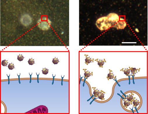 The improvement in sensitivity and accuracy comes from the smart imaging probe that interacts with the metastatic cells. The group built a molecularly activated plasmonic nanosensor (MAPS) for this task. The MAPS components include a gold nanoparticle, which is the part of the nanosensor that is seen by the imaging system. The MAPS nanosensor also contains an antibody to the epidermal growth factor receptor (EGFR). This antibody was chosen because EGFR has been shown to be expressed in abnormally high amounts on the surface of many cancer cells including lung, oral cavity and cervix. With these two components the MAPS can find the metastatic cell using the antibody that binds to the EGFR receptor and can be seen using photoacoustic imaging systems that detect the gold nanoparticle, but only when the MAPS interact with a cancer cell.