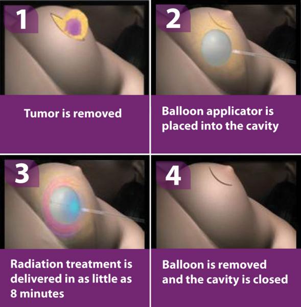 Being able to start radiation therapy almost simultaneously with tumor removal dramatically cuts down on the amount of time required for radiation therapy. In breast cancer cases — IORT’s most common application — the entire course of treatment can be delivered in a single day, a variation on accelerated partial breast irradiation (APBI).