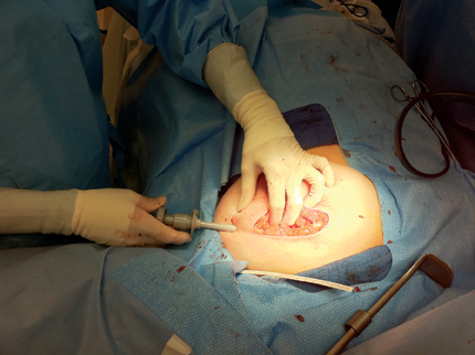 At this point, the radiation source is inserted into the balloon and radiation is initiated. The typical treatment time is eight to 10 minutes, depending on the balloon size. The overall treatment time of the radiation oncology team is approximately 22 minutes, and the whole IORT procedure only adds 25-30 minutes of additional total operative time.