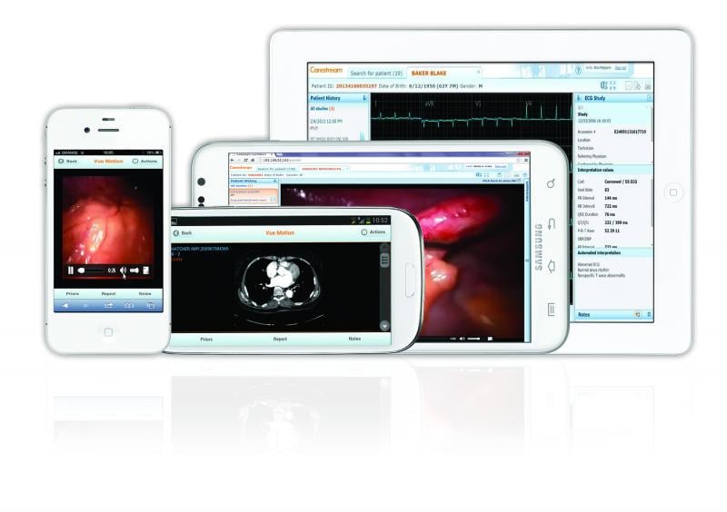 • Carestream: Carestream’s Vue Motion universal viewer earned FDA approval for use on mobile devices in 2011. The clearance has expanded to allow access from multiple operating systems and via a web brower with operating platforms utilizing HTML5, including PCs, Mac and validated mobile devices.