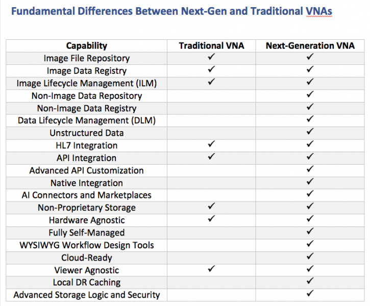 To accomplish this, a next-gen VNA incorporates a powerful registry and broker for aggregating all clinical data-types throughout a health enterprise system. Although the new VNA is still relatively transparent to most clinical users, their true value exists as a data library and clinical sharing engine between health information technology (HIT) devices, regardless if they are image producing or textual. In essence, these platforms must be able to not only centralize and manage multi-archive enterprise environments, but also all other data producing objects in a healthcare ecosystem.