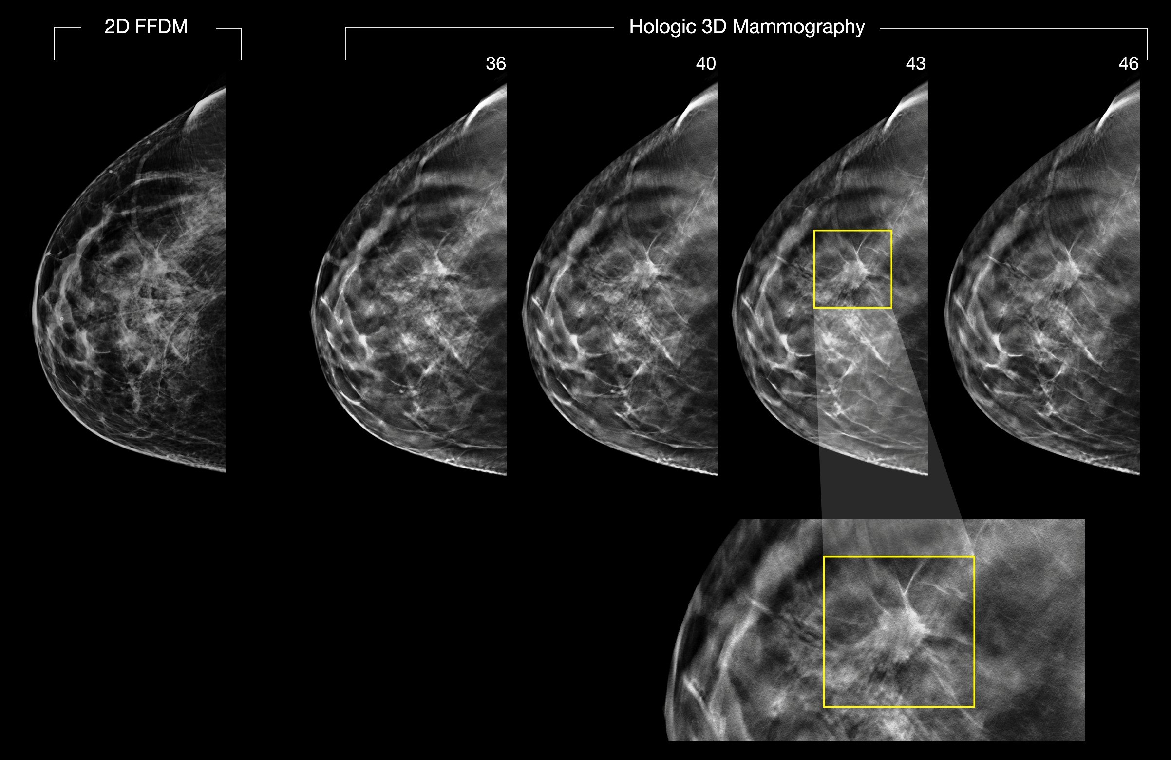 Since the widespread adoption of digital imaging and PACS, referring physicians seldom visit radiology reading rooms, substantially reducing a major source of feedback for radiologists. (Shown are 2-D and 3-D digital breast images.) A software module to be described April 5 at the SBI/ACR Breast Imaging Symposium has been providing that feedback for radiologists interpreting breast images at the University of Pittsburgh Medical Center. Image courtesy of Hologic