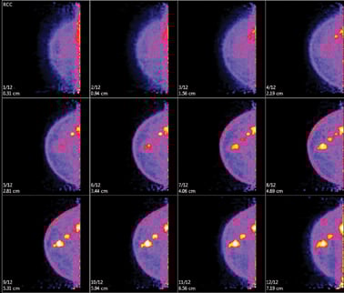 PEM produces a 3-D tomographic view of the breast in 12 images per view. Early studies comparing the results of PEM with pathology showed a sensitivity of 90 percent as well as a high specificity of 86 percent in evaluating known breast cancer or suspicious lesions. Other studies have shown that PEM has a positive predictive value for biopsy of 83 percent when compared to 74 percent for MRI with no statistically significant difference in sensitivity and specificity.