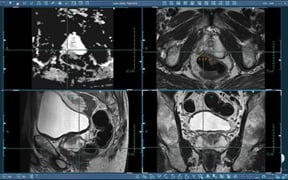 Diffusion-weighted images with b-values of 50, 500 and 800 were acquired and an ADC map was generated. The study was then imported to DynaCAD for Prostate for analysis and interpretation.
