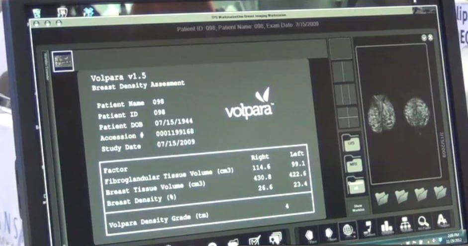 Cleared by the the U.S. Food and Drug Administration (FDA), HealthCanada, the TGA and CE-marked, VolparaDensity is used by radiologists to objectively assess density from both digital mammography and tomosynthesis images and help evaluate who might benefit from additional screening. Highly correlated to breast magnetic resonance imaging (MR) assessments, VolparaDensity is a reliable tool that automatically generates an objective, automatic measurement of volumetric breast density and a FDA cleared BI-RADS breast density category. More than 3 million women have had their volumetric breast density analyzed using VolparaDensity, which is part that enables volumetric measurements of density, patient specific dose, breast compression and other factors designed to help maintain accuracy and consistent quality in breast screening.