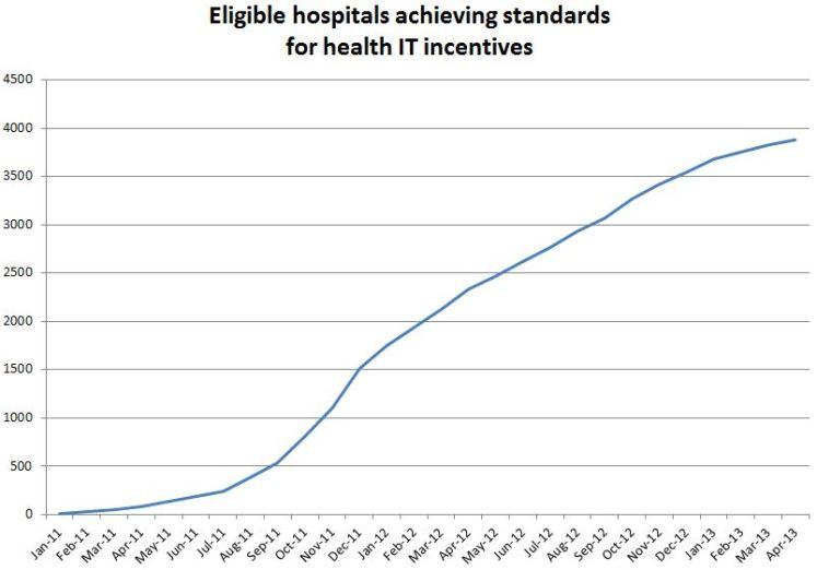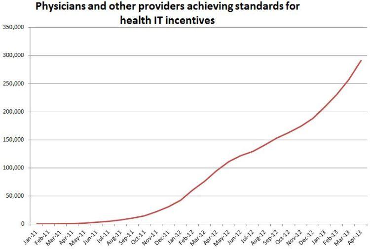 HHS has met and exceeded its goal for 50 percent of doctor offices and 80 percent of eligible hospitals to have EHRs by the end of 2013.