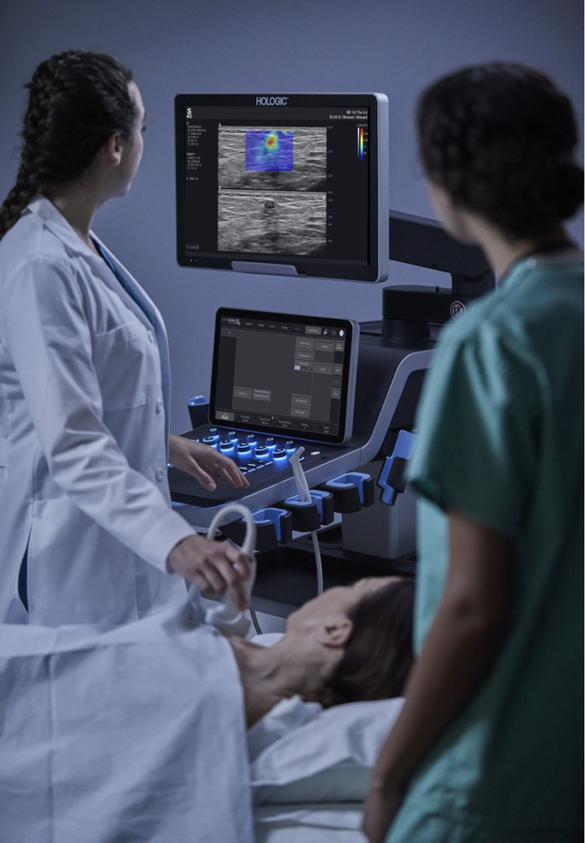 The color-coded mapping of breast lesion stiffness is a complementary tool for breast ultrasound that provides additional information that can help radiologists feel more confident in their diagnosis. Image courtesy of Hologic.