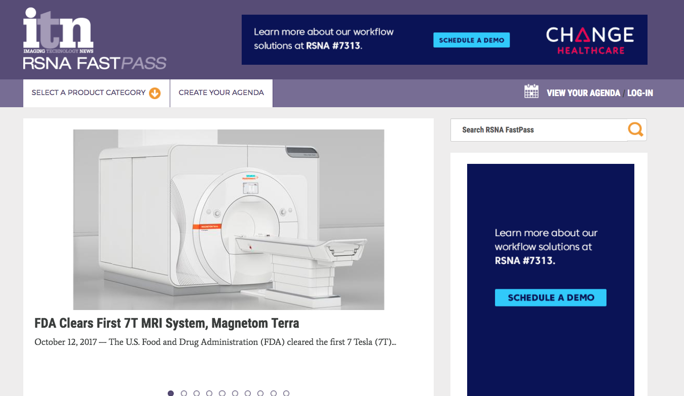 To help readers find out what vendors will be highlighting on the show floor at the 2017 Radiological Society of North America (RSNA) meeting, ITN has created the RSNA FastPass microsite. This site can be searched by modality to find an alphabetical listing by vendor and lists what technologies they will be showing and their booth numbers. The site can be used for planning where to visit on the vast show floor of more than 800 vendors.