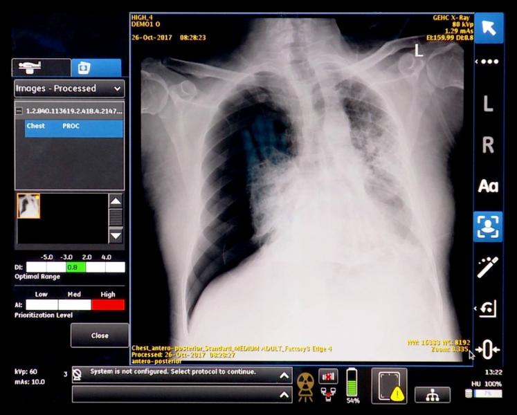 At RSNA 2017, GE showed how integrating a smart algorithm with imaging technology might protect patient and provider. The company demonstrated a work in progress that combined a smart algorithm and a portable X-ray unit. Developed in concert with the University of California in San Francisco, the algorithm is designed to look for signs of pneumothorax (collapsed lung) in the chest radiographs of surgical patients before they exit the operating room.