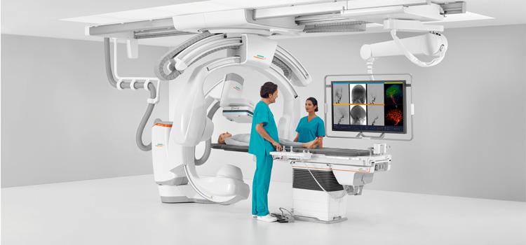 Angiography X-ray systems are the center piece of the catheterization lab, interventional lab and hybrid OR. The systems offer a fluoroscopic X-ray view of the anatomy to guide diagnostic and interventional procedures.