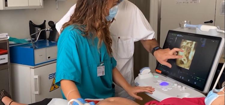 Here are two quick clinical examples of point-of-care ultrasound (POCUS) lung imaging and cardiac imaging using a GE ...