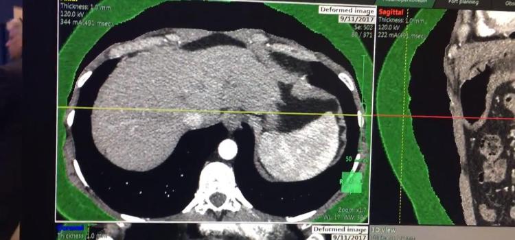 This is an example of a new endoscopic virtual peritoneal inflation tool on the patient's computed tomography (CT) ...