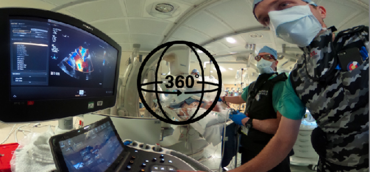 This 360 degree view shows staff at the University of Colorado Heart and Vascular Center performing live transesophageal ...