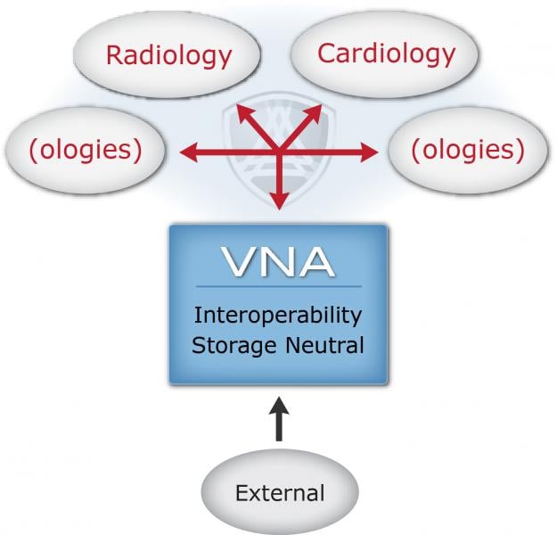 A vendor neutral archive (VNA) stores medical images and documents in a standard format so they can be accessed by other systems.