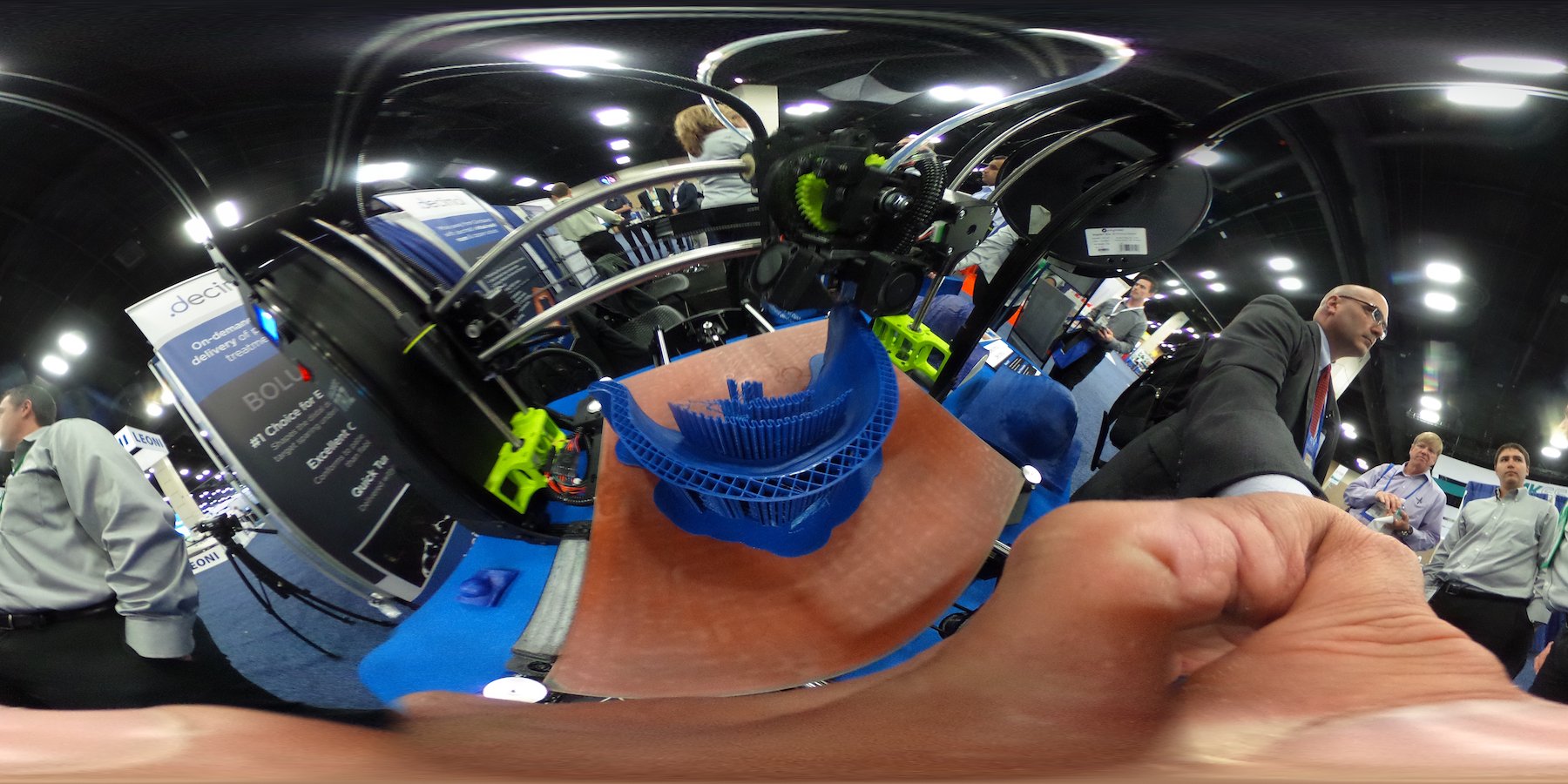 The company .decimal at ASTRO showed a 3-D printing technology where radiation therapy (RT) bolus shields can be printed on demand, tailor made to fit a patient. This one is being printed at the expo and is for breast cancer RT. The company also makes customized machined plastic bolus, but offers the printing option for centers that have their own 3-D printers. A bolus is used to allow higher intensity radiation doses to be used in RT. These can be customized to fit based on the patient’s CT imaging.