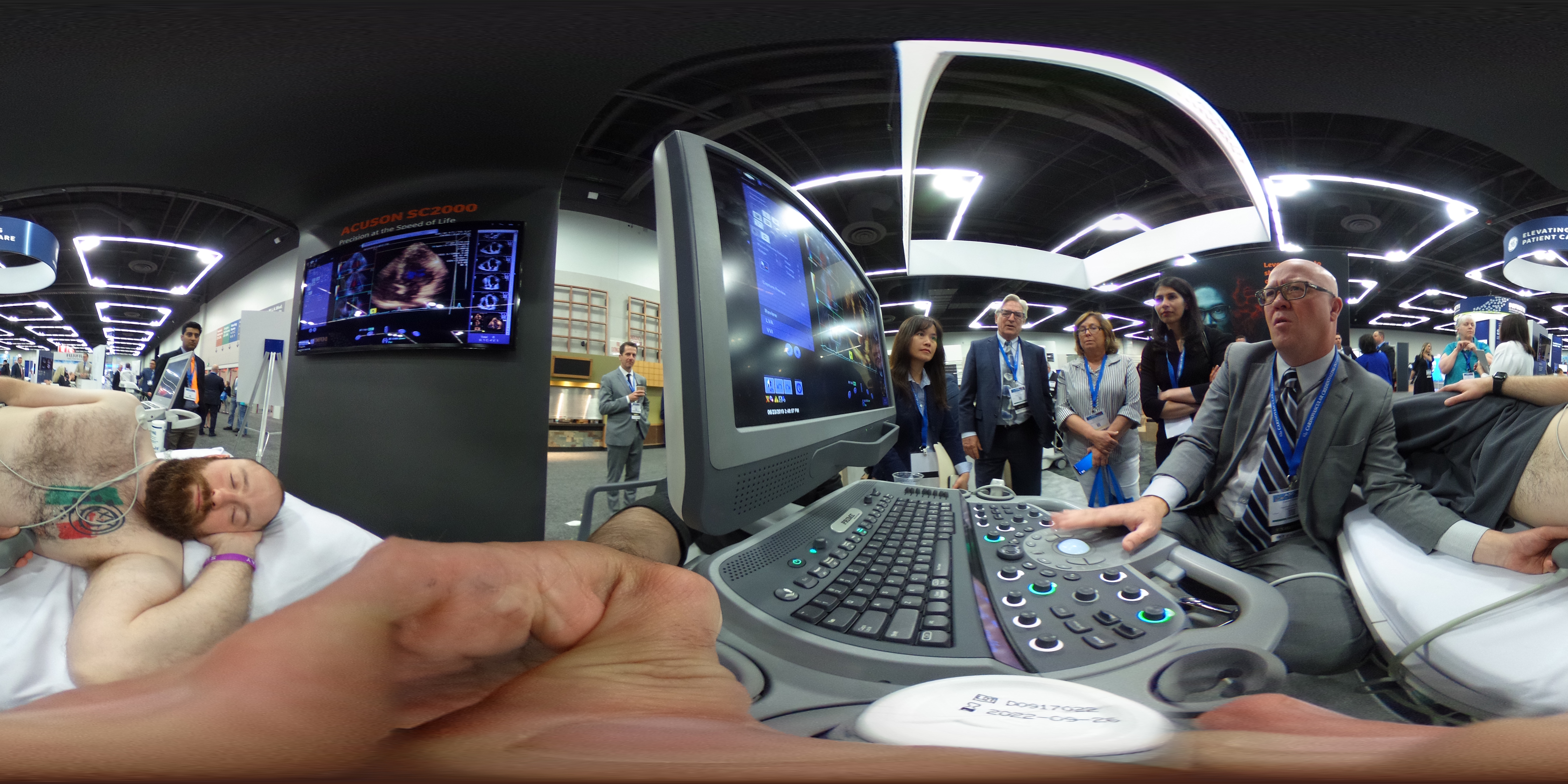 This is a 360 degree view of a live cardiac echo demonstration for the Siemens Healthineers Acuson SC2000 cardiovascular ultrasound system at the 2019 American Society of Echocardiography (ASE) meeting. The system is Siemens' flagship echocardiography system and the main focus of demos at ASE were on its advanced assessment capabilities for valves and structural heart evaluations.