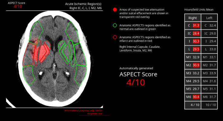 - CINA-ASPECTS is a quantification tool that automatically measures an ASPECT Score to assess ischemic changes in stroke. CINA-ASPECTS enables faster, more consistent, and more precise interpretations for assessing acute ischemic stroke.
