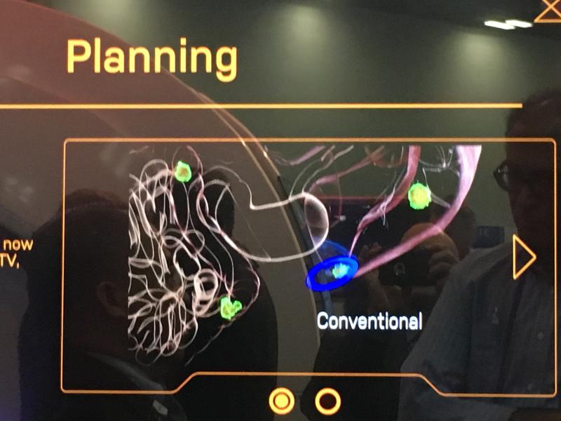 The Reflexion combination PET-CT linac, on display at ASTRO 2018. The system uses PET radiotracer emissions to track tumors directly without the need for margins to account for respiratory motion.