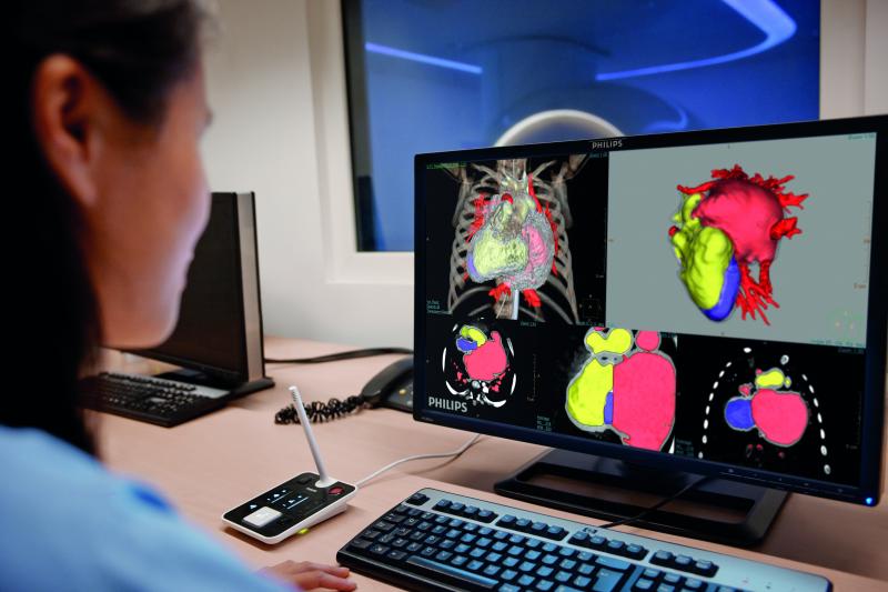 The digital reconstruction begins when IntelliSpace Portal is used to access CT, MR or PET/CT data. The 2-D slices are reassembled in three dimensions. About 70 percent is in cardiology; 20 percent is in angiography, Augustyn said.