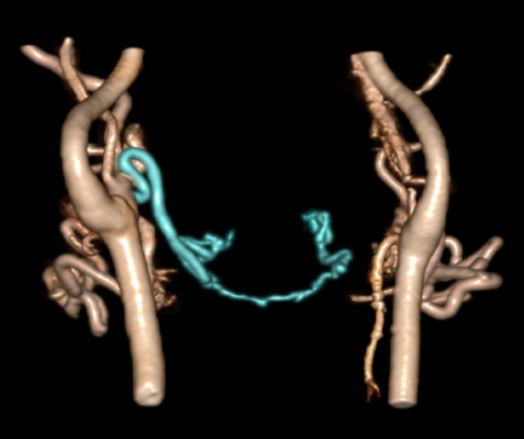 To learn more, Rybicki and Kanako Kumamaru, M.D., Ph.D., research fellow, Applied Imaging Science Laboratory, used 320-detector row dynamic computed tomography angiography (CTA) to study the facial allografts of the three patients one year after successful transplantation. The CTA technology offers imaging over 16 cm of coverage, enabling the researchers to view collateralization, a process in which the body stimulates existing blood vessels to elongate, widen and form new connections. Collateralization often results from anastomoses, or branches formed between adjacent blood vessels.