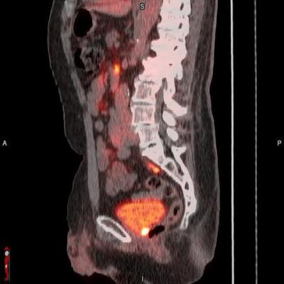 POSLUMA (flotufolastat F 18) PET/CT image showing uptake in the prostate bed, consistent with recurrent prostate cancer Photo courtesy of Blue Earth Diagnostics