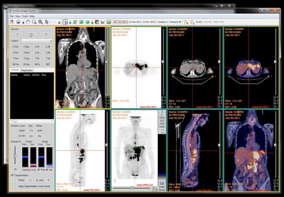 “Our physician clients have been using UniSyn to review NM images and processed screen captures from NM workstations. With the processing features, our clients can now perform or repeat processing of nuclear medicine scans, from wherever they are. That’s important, especially when the NM technicians are unavailable to repeat the processing, or the workstation itself is not accessible,” said Mathew A. Thomas, founder and CEO of Convergent Imaging Solutions. He continued, “UniSyn can perform renal, gallbladder, gastric, and MUGA processing, along with semi-automated pulmonary lobe segmentation, and mirrored planar and volumetric uptake determination. UniSyn is also integrated with the Cedars-Sinai cardiac analysis module for gated SPECT. Deploying UniSyn as an enterprise molecular imaging solution allows our clients to reduce and replace desk bound nuclear imaging workstations, increase convenience and significantly reduce their annual maintenance fees.”