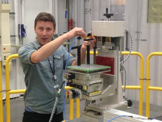 USask PhD bio-medical engineering student Farley Chicilo at the Canadian Light Source synchrotron at University of Saskatchewan. Photo courtesy of Canadian Light Source, University of Saskatchewan