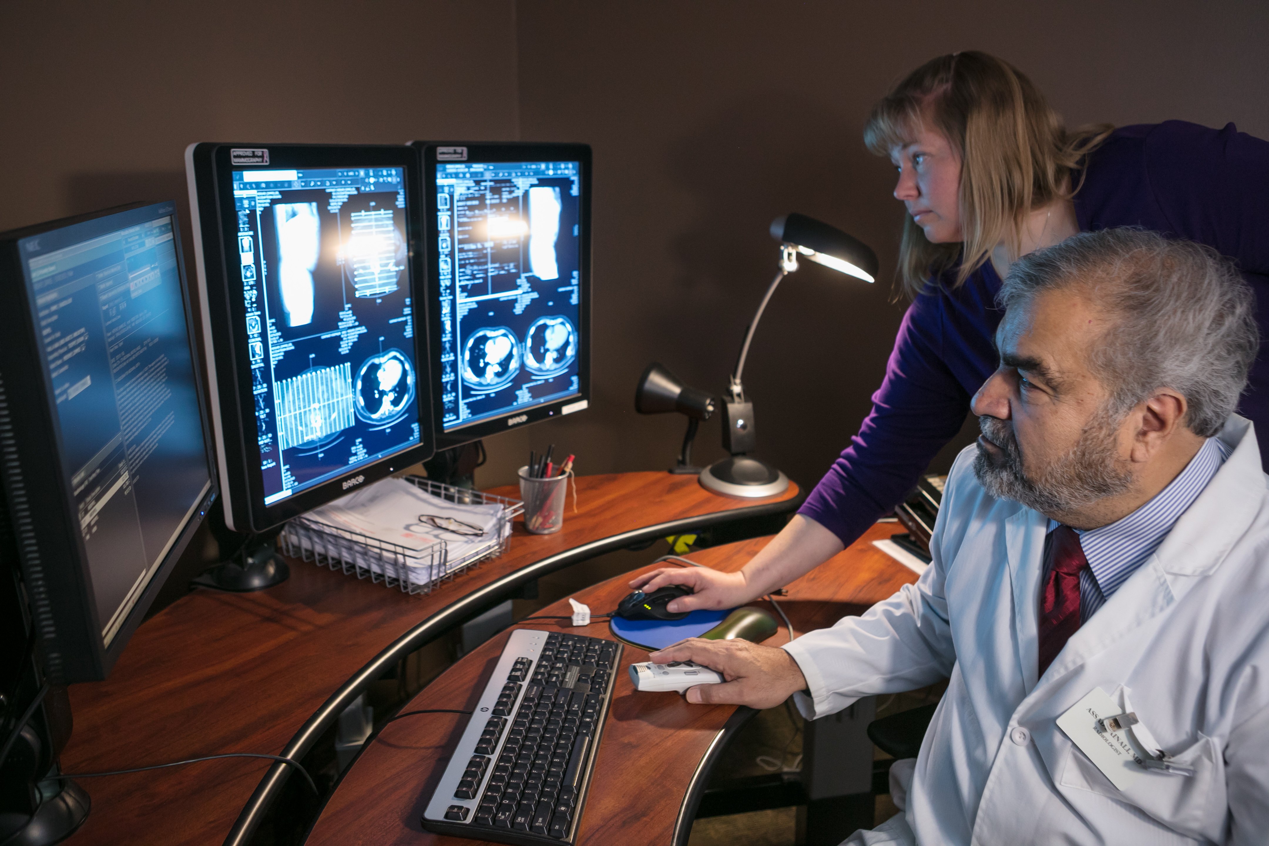 Assad Zainali, M.D., and Kelly Denton, director of imaging at Southwest Medical Center, review radiology studies with Novarad's Ncompass Enterprise Imaging.