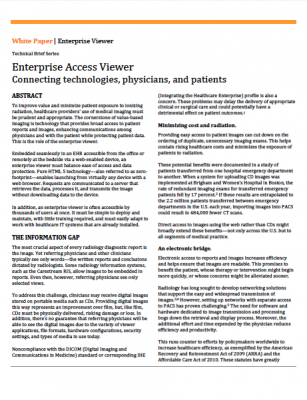 To improve value and minimize patient exposure to ionizing radiation, healthcare providers’ use of medical imaging must be prudent and appropriate. The cornerstone of value-based imaging is technology that provides broad access to patient reports and images, enhancing communications among physicians and with the patient while protecting patient data. This is the role of the enterprise viewer.