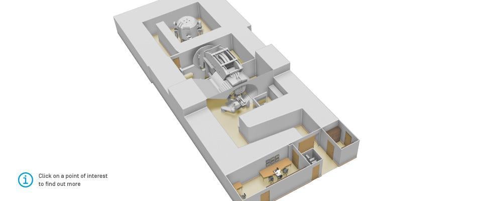 A room layout for the IBA ProteusOne compact proton therapy system.