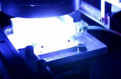 To create the transducer components, a thin layer of ceramic slurry is spread on a plate, the system templates the form to be created and an ultraviolet light is used to fix the form in the slurry.