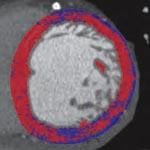 CT rest perfusion image obtained with CardIQ Xpress showing region of interest as compared to MR and rest MIBI with delayed contrast enhancement.