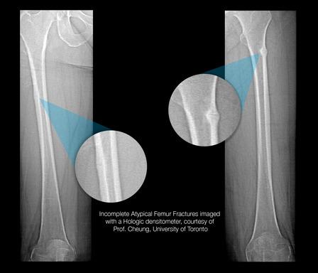 Incomplete Atypical Femur Fractures imaged with a Hologic densitometer, courtesy of Prof. Cheung, University of Toronto.
