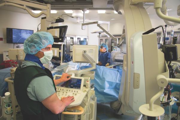 Sixty percent of cardiologists have reported spinal issues after just 21 years in practice, 28 percent report knee, hip or ankle problems and 33 percent miss work due to orthopedic issues caused by cumbersome protective apparel and poor ergonomic design of interventional suites [1]. In a Society for Cardiovascular Angiography and Interventions (SCAI) survey, nearly half of the 424 respondents reported spine problems [2]. The daily bearing of weight over time largely places interventionalists at risk for spinal, knee, hip and ankle pain and illness, with a strong correlation being found between the number of years in practice and the incidence of these impairing orthopedic problems [2].