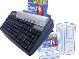 The KeyScan KS810-P integrated keyboard and sheet-feed scanner is reportedly the only computer keyboard with built-in full-page color scanner. It occupies the same footprint as a standard keyboard, and is designed to quickly and easily scans black-and-white and color documents ranging from smooth surface plastic cards like medical, insurance, 10 cards and driver licenses.