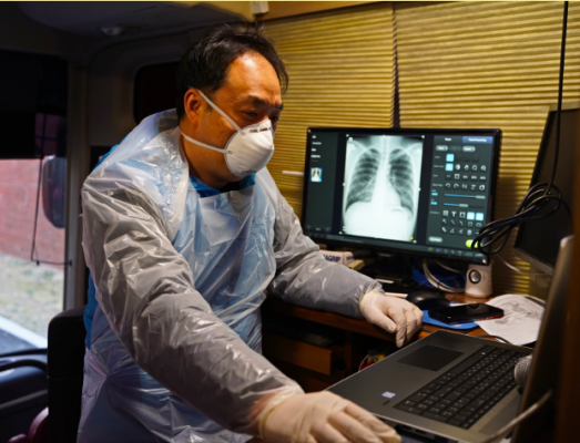 The patients’ chest X-ray images are sent directly to radiologists in Seoul, where Lunit INSIGHT CXR is used to support the radiologists in the management of COVID-19. The system helps healthcare professionals in the prompt and early discovery of patients, sending them directly to larger hospitals for proper treatment if required.