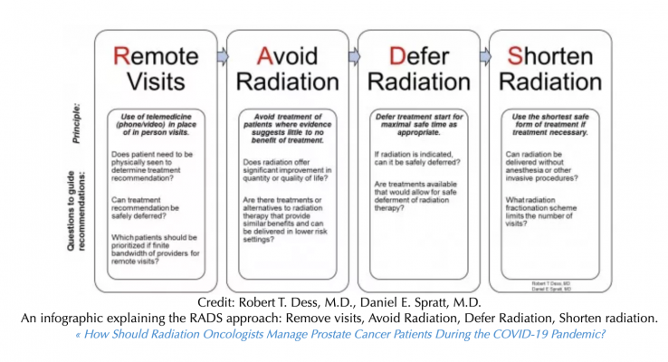Spratt and Robert T. Dess, M.D., an assistant professor of radiation oncology at Michigan Medicine, developed a framework dubbed RADS — for Remote visits and Avoid, Delay, and Shorten radiotherapy. This framework, elaborated over the past week as COVID infections rose globally, is now being adopted and used by the National Institute for Health and Care Excellence (NICE) and NHS England (NHSE) in the United Kingdom, Spratt notes.