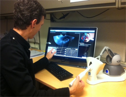 ScanTrainer is a virtual “real feel” ultrasound training simulator that provides students with a 24/7 educationally driven training program that replicates the real scan experience. Trainees can literally “feel” what they see on the computer screen, since they hold a Sensable Phantom haptic device instead of a mouse as they progress through the training. ScanTrainer allows users to develop the complex mix of cognitive skills and eye-hand movement coordination, but without the need for an ultrasound machine, a patient and considerably reduced direct supervision by an expert.