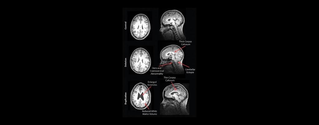 The researchers at UCSF and four other sites performed structural MRI exams on 79 deletion carriers, ranging in age from 1 to 48, and 79 duplication carriers, ages 1 to 63, along with 64 unaffected family members and 109 participants in a control group.