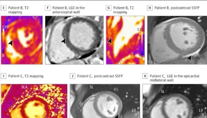 For this retrospective study, the researchers analyzed data from 92 consecutive adult patients with myocarditis and abnormalities on cardiac MRI performed at a tertiary referral hospital between 2019 and 2021. Patients were classified into one of three groups: myocarditis following COVID-19 vaccination, myocarditis following COVID-19 illness, and myocarditis not associated COVID-19 vaccination or illness.