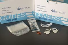 The Needle Guidance System utilizes a two-part system, consisting of a custom reusable biopsy bracket and disposable snap-on needle guide with sterile CIV-Flex transducer cover. The Infiniti needle guide offers multiple angle capabilities for shallow or deep access. The open channel design of the needle guide allows instruments to be positioned in the scan plane, providing a safe, efficient means for ultrasound-guided puncture procedures. The needle guide attaches to the reusable bracket and accepts 14 and 18 gauge or 20, 21/22 and 25 gauge instruments. Replacement kits include needle guide, transducer cover, gel packet and colored elastic bands.